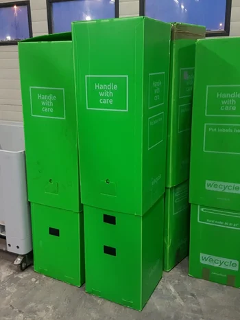 Bottelier heeft de TL-buizen en armaturen gedemonteerd om ze direct beschikbaar te maken voor hergebruik. Het vastzetten van hoeveelheden TL-buizen is een hele klus, omdat de buizen aanzienlijke hoeveelheden metaal bevatten die het milieu belasten.